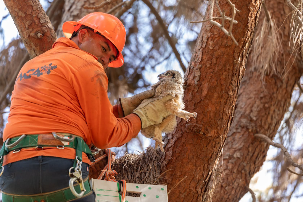 Most birds rely on trees, shrubs, and brush for food, cover, nesting, and rest. There are laws in place that protect birds, their nests, eggs, and young from being removed, destroyed or harassed. Wildlife habitat protection and inspection prior to pruning is our goal. We make every attempt to protect all birds (including Migratory Birds), animals, and nests within trees. Our highly-trained staff follows certain steps prior to pruning, and follows protocol when encountering a bird or nest.